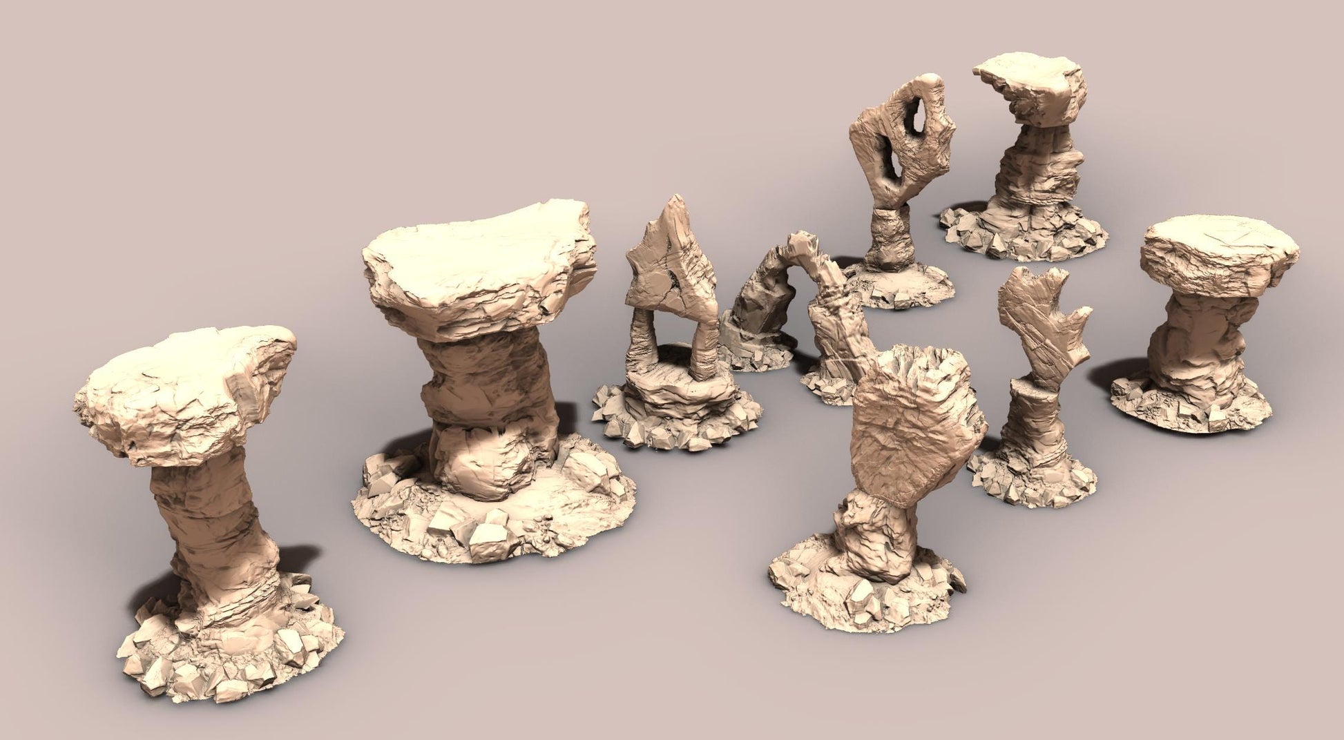 Balanced Badland Rocks - 3D Printed Tabletop Terrain, Perfect for Wargames, Board Games, Role Playing Games