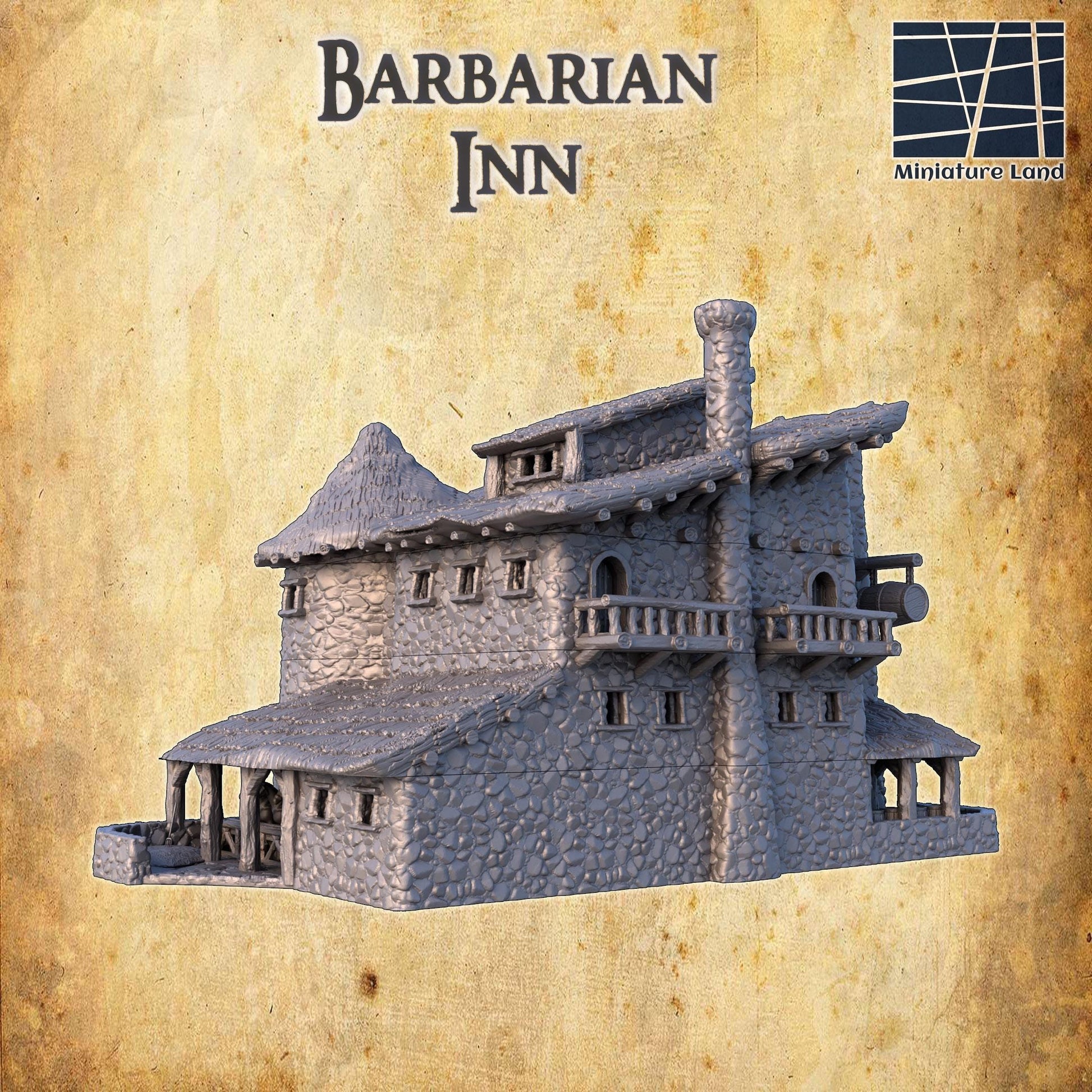 Barbarian Inn - Tabletop Terrain - 28 MM, Tabletop 3D Printed Terrain by MiniatureLand, Perfect for Wargaming and RPGs