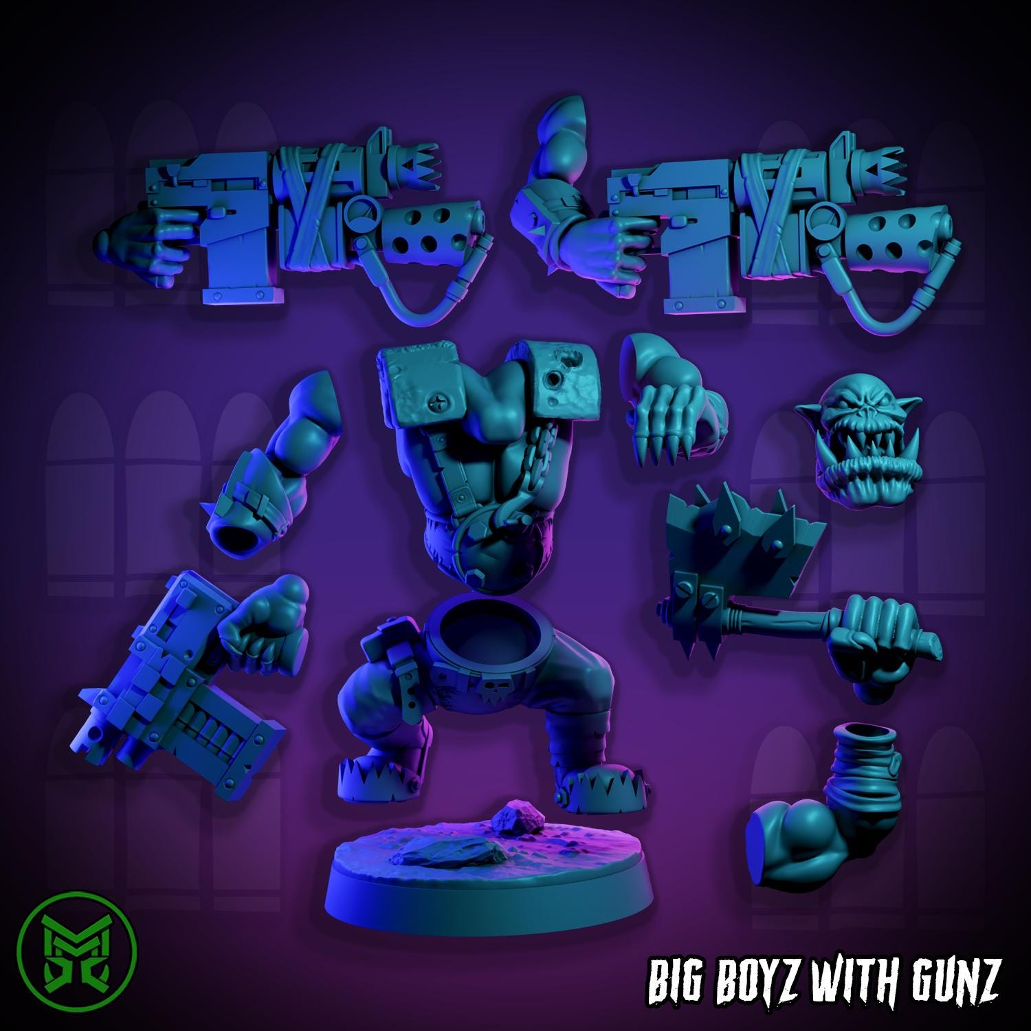 Big Boyz with Gunz, Space-Faring Orkish Menace Sculpted by Mekka Miniatures, Grimdark Compatible, Sci-Fi Wargame Scale