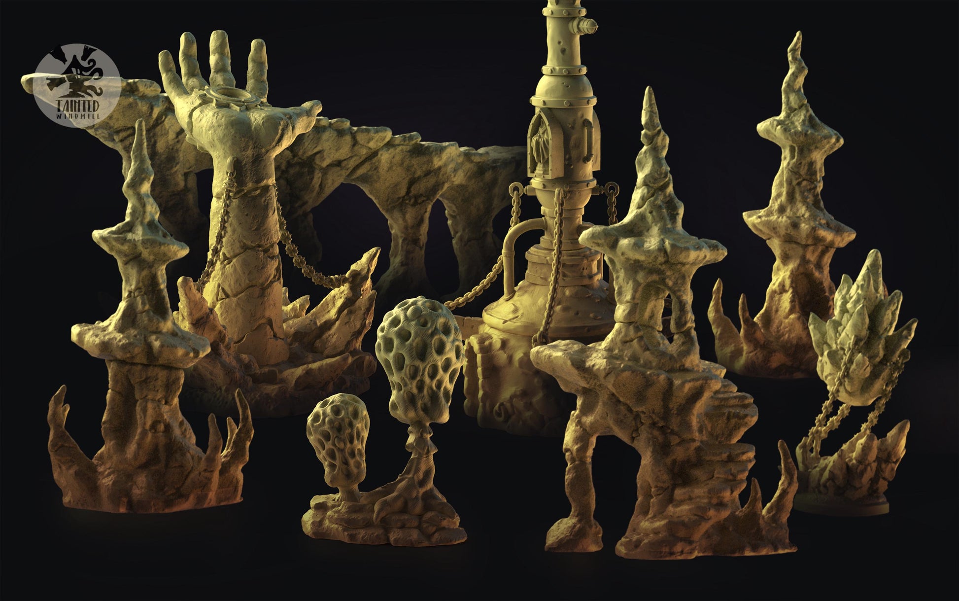 Desert Valley Rocks Terrain Set, Chaotic Plagued Terrain Sculpted by Tainted Windmill for Wargames set in the Grimdark Future