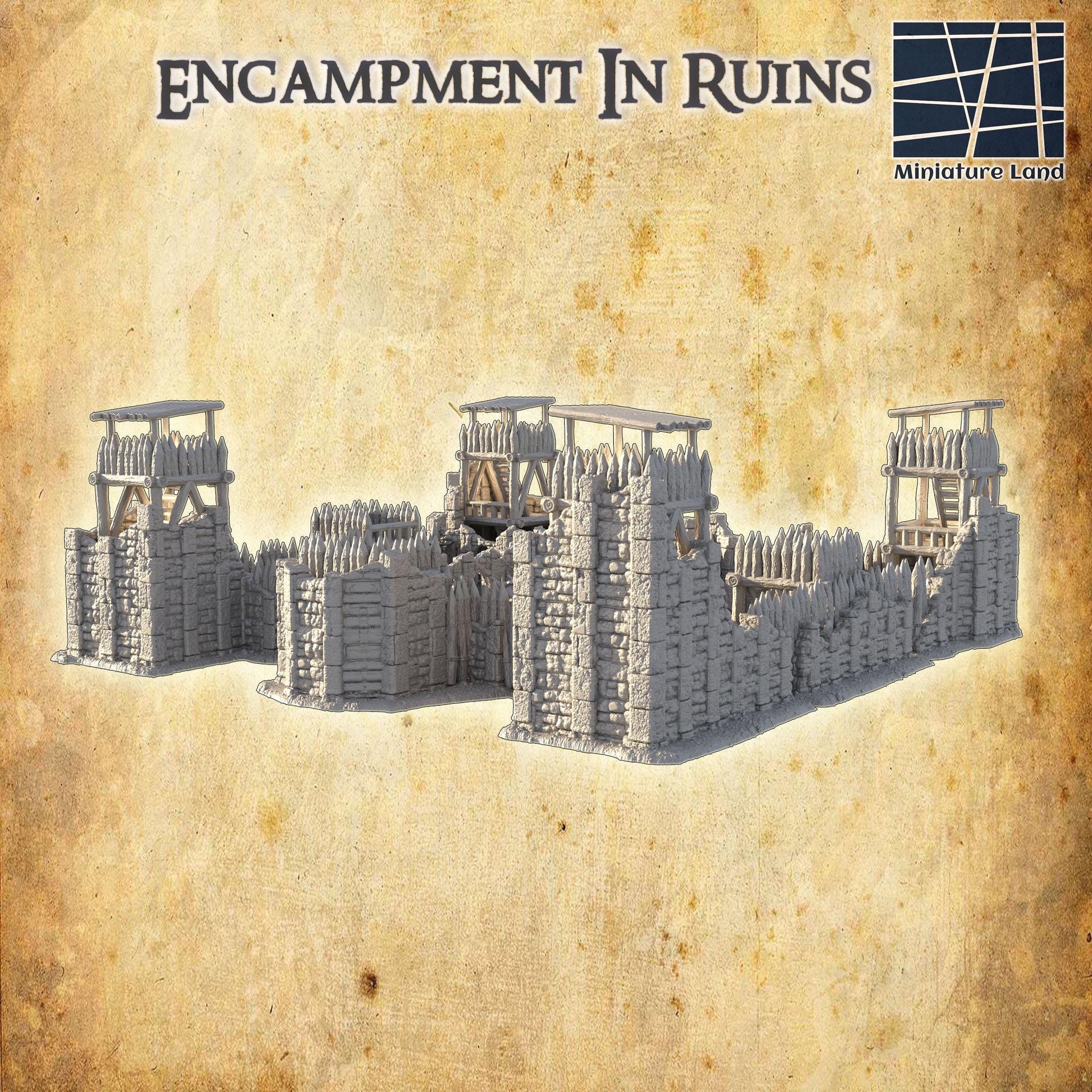 Encampment in Ruins - Tabletop Terrain - 28 MM, Tabletop 3D Printed Terrain by MiniatureLand, Perfect for Wargaming and RPGs