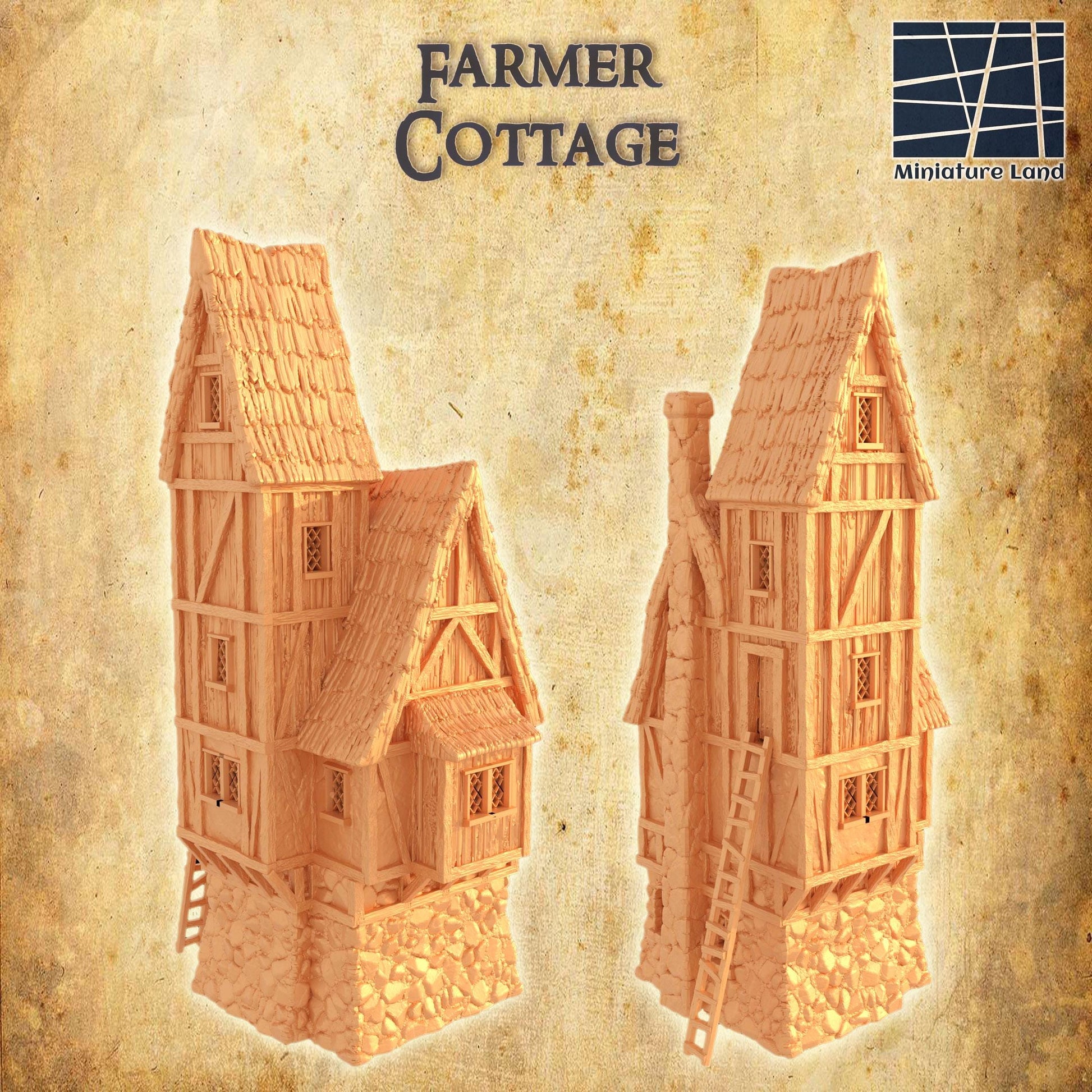 Farmer Cottage - Tabletop Terrain - 28 MM, Tabletop 3D Printed Terrain by MiniatureLand, Perfect for Wargaming and RPGs
