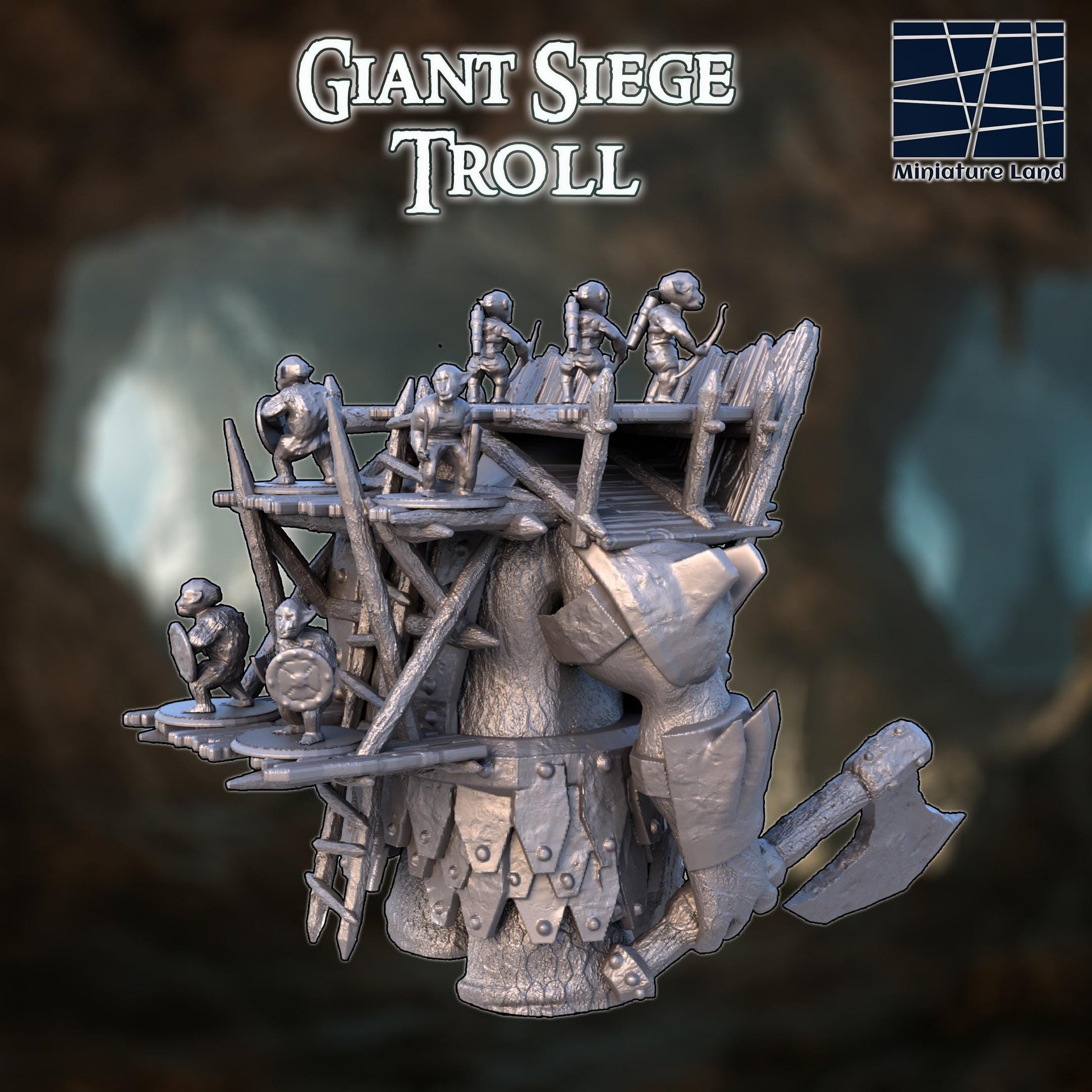 Giant Siege Troll - Tabletop Terrain - 28 MM, Tabletop 3D Printed Terrain by MiniatureLand, Perfect for Wargaming and RPGs