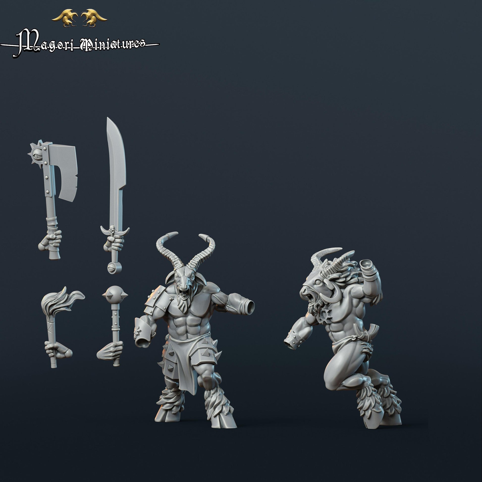 Goatman cultists, Fantasy Skirmish Miniatures by Magori Miniatures, perfect for Fantasy Wargames and RPGs