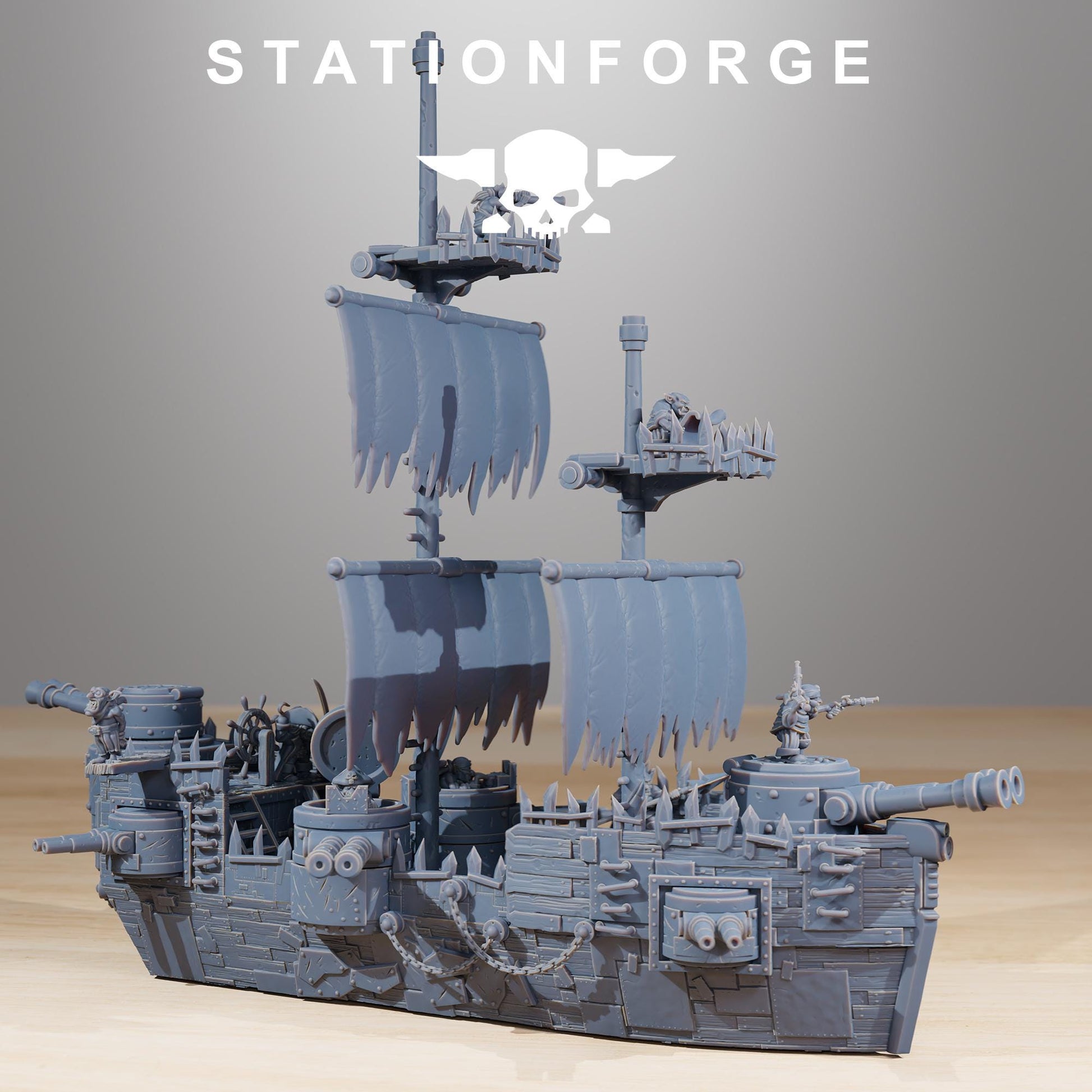 Gobs Pearl Battle Ship, Space-Faring Orkish Menace Sculpted by STATIONFORGE, Grimdark Compatible, Sci-Fi Wargame Scale