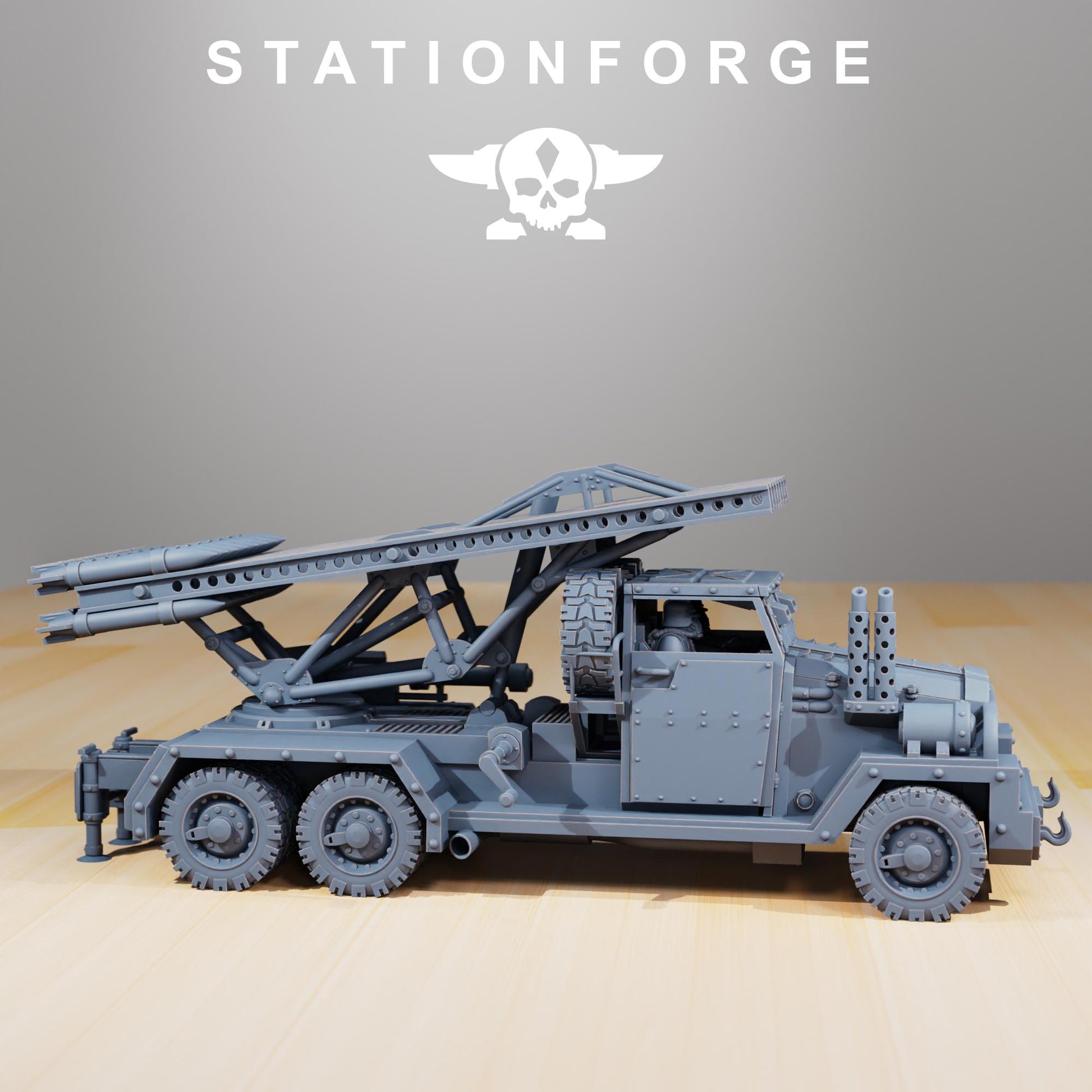 GrimGuard - SF-31J Artillery Truck, Modular Sci-Fi Guardsmen Vehicle by STATIONFORGE, Sci-fi Wargames Proxy, Imperial Guard Transport Truck