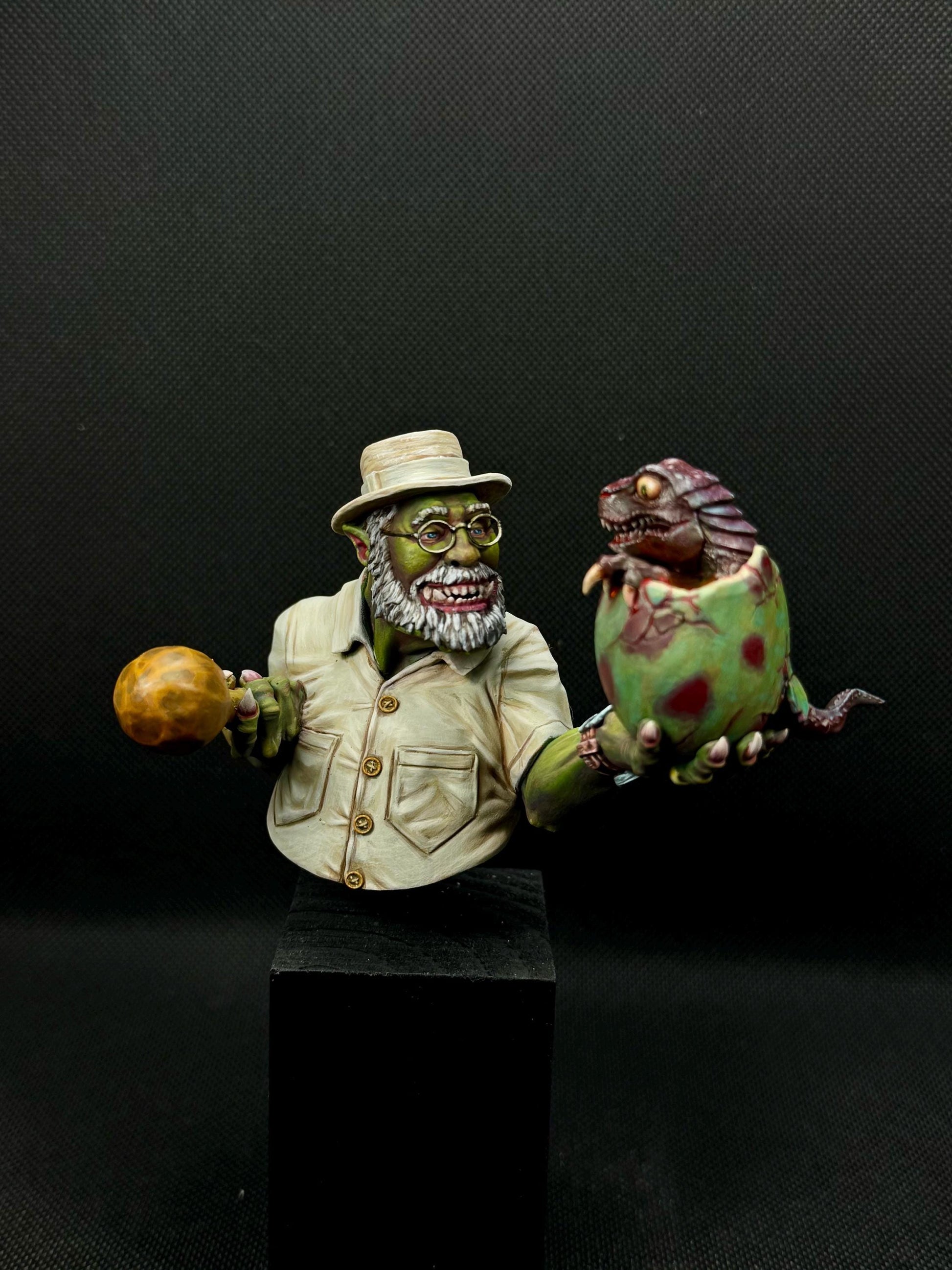 Meet Hammork, da mastermind behind da biggest dino Waaagh! In this bust, he proudly holds a hatched egg, revealing a tiny but fierce baby raptor, da cutest (and deadliest) little beast ya ever saw! With tons of character and a fun orky twist, this bust is perfect for painting, displaying, or adding to your collection of Waaagh artifacts.