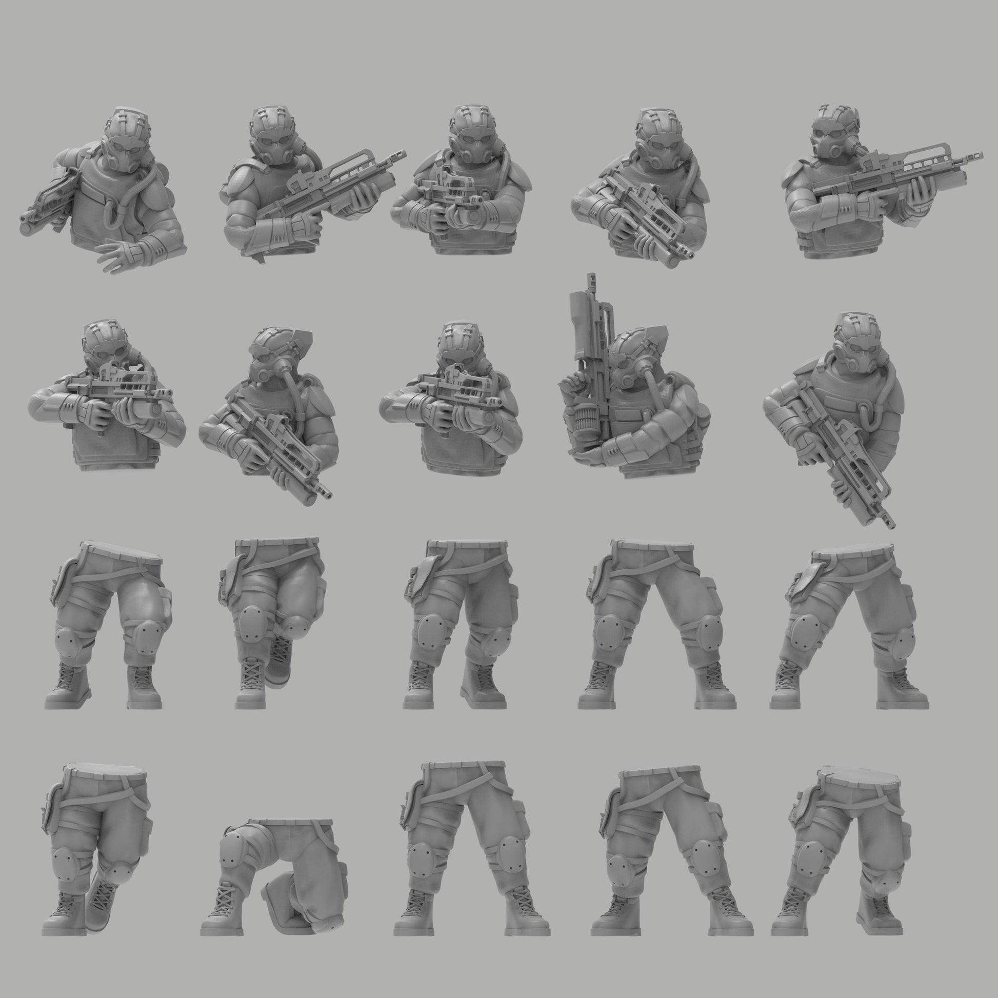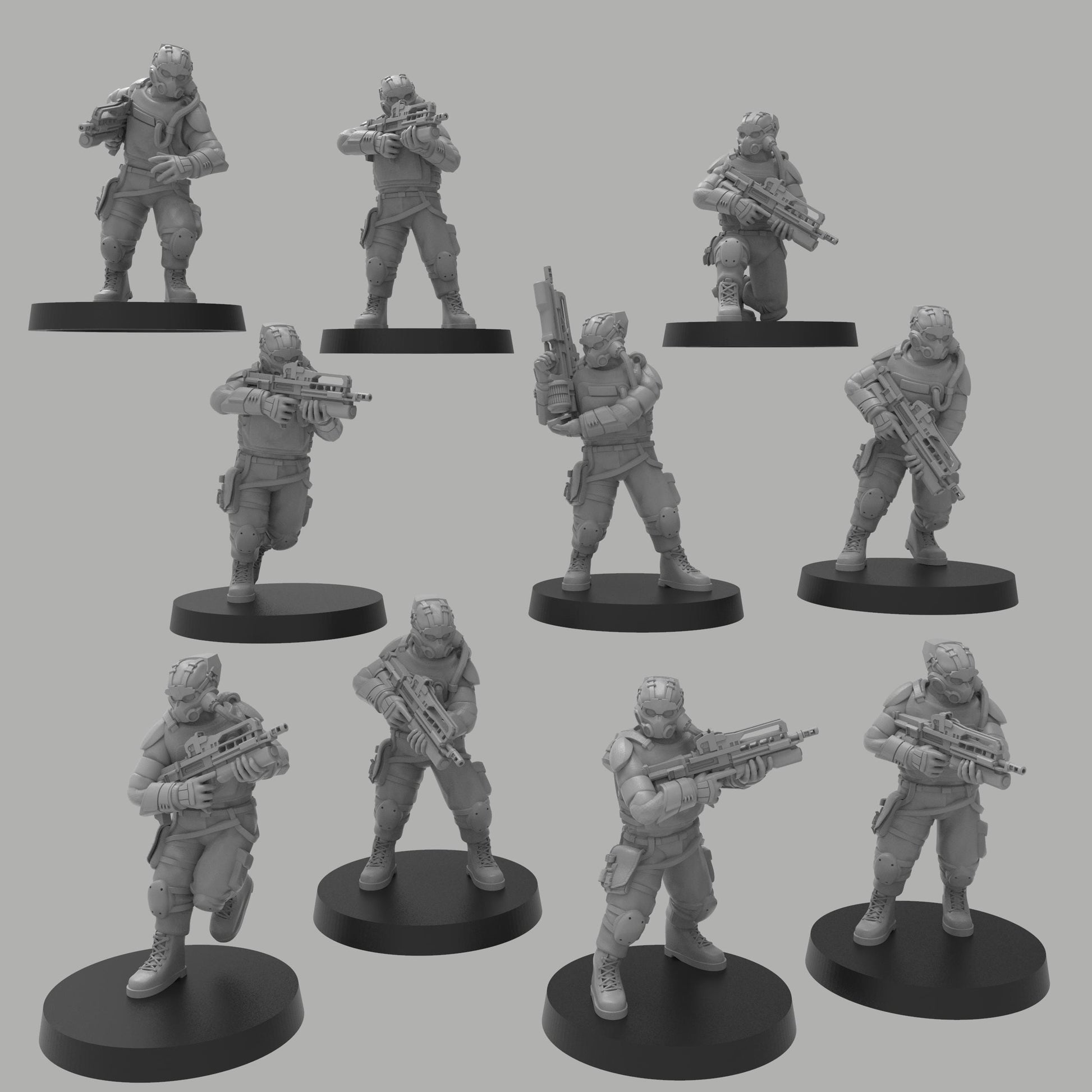 Heck Ghosts Advanced Infantry w/ Rifles, Semi-modular Sci-Fi warriors by ThatEvilOne, Sci-Fi Wargames Guard Proxy, Imperial Auxilia