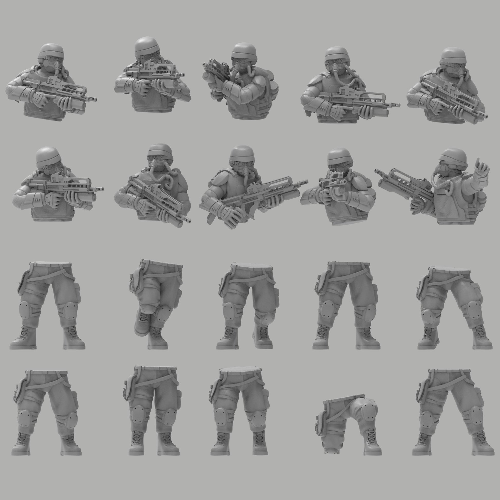 Heck Ghosts Assault Infantry w/ Rifles, Semi-modular Sci-Fi warriors by ThatEvilOne, Sci-Fi Wargames Guard Proxy, Imperial Auxilia Army