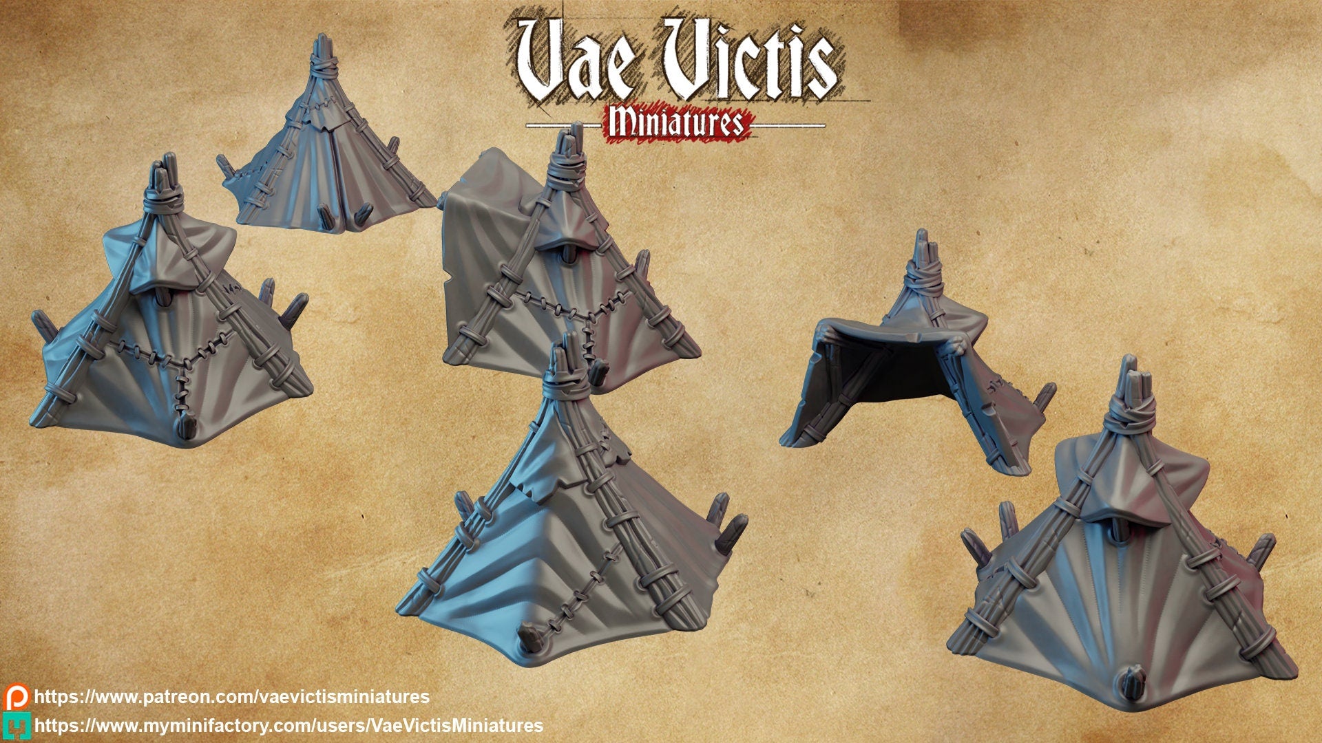 Kobold Tent and Nest Set - This set features intricately detailed kobold tents and nests, perfect for creating a bustling and immersive kobold camp in your tabletop games. Ideal for adding a touch of adventure and fantasy to your gaming world.