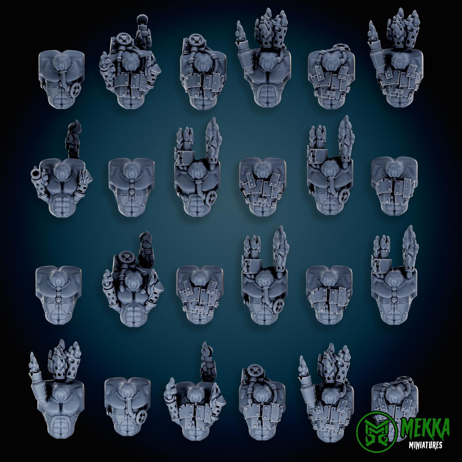 20x Modular Cyborks listing includes 40 modular Ork heads, 20 modular bodies, 20 modular legs, 24 different left arms with weapons and 24 different right arms with weapons.