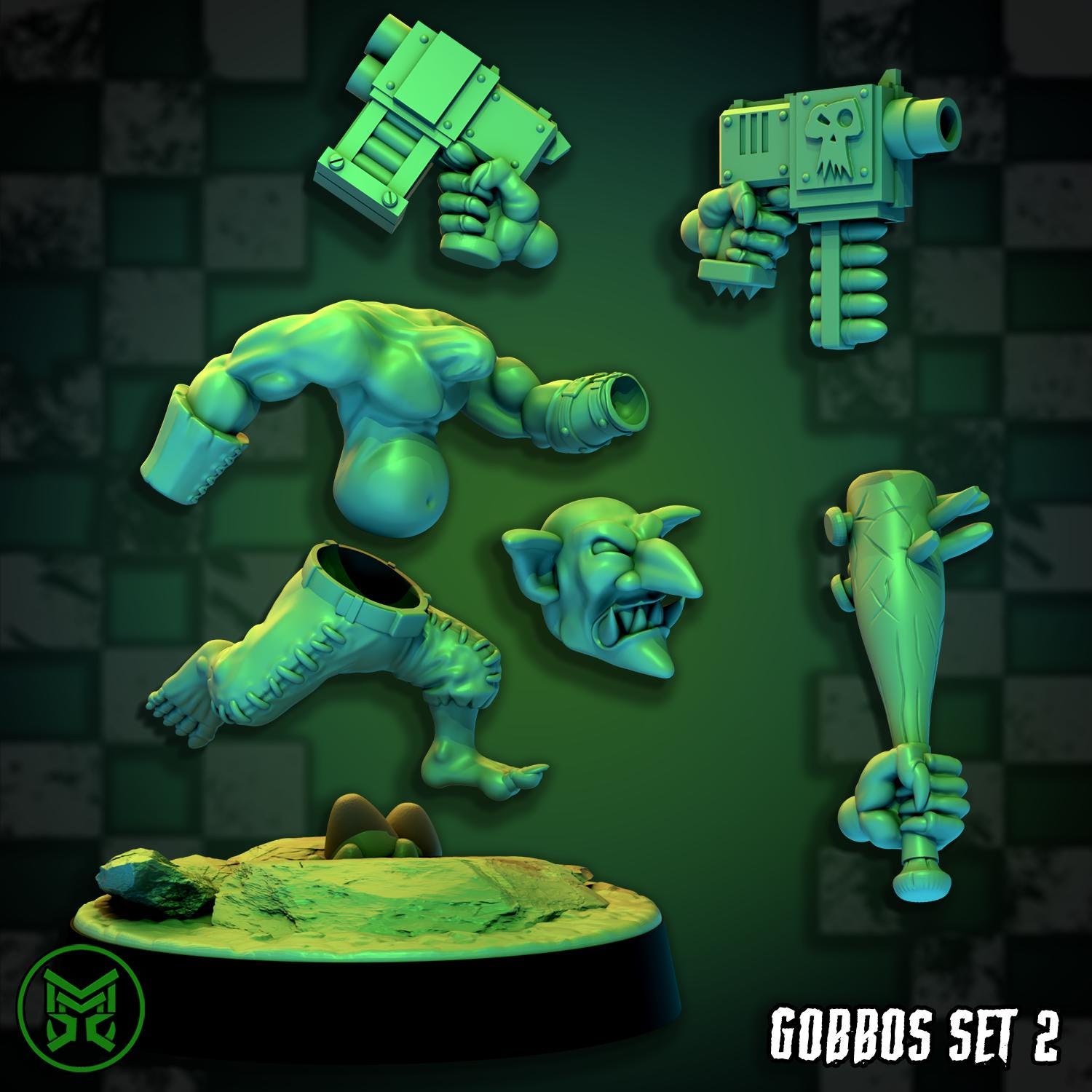 Modular Gobbos - set 2, Space-Faring Orkish Menace Sculpted by Mekka Miniatures, Grimdark Compatible, Scaled for Miniature Wargames