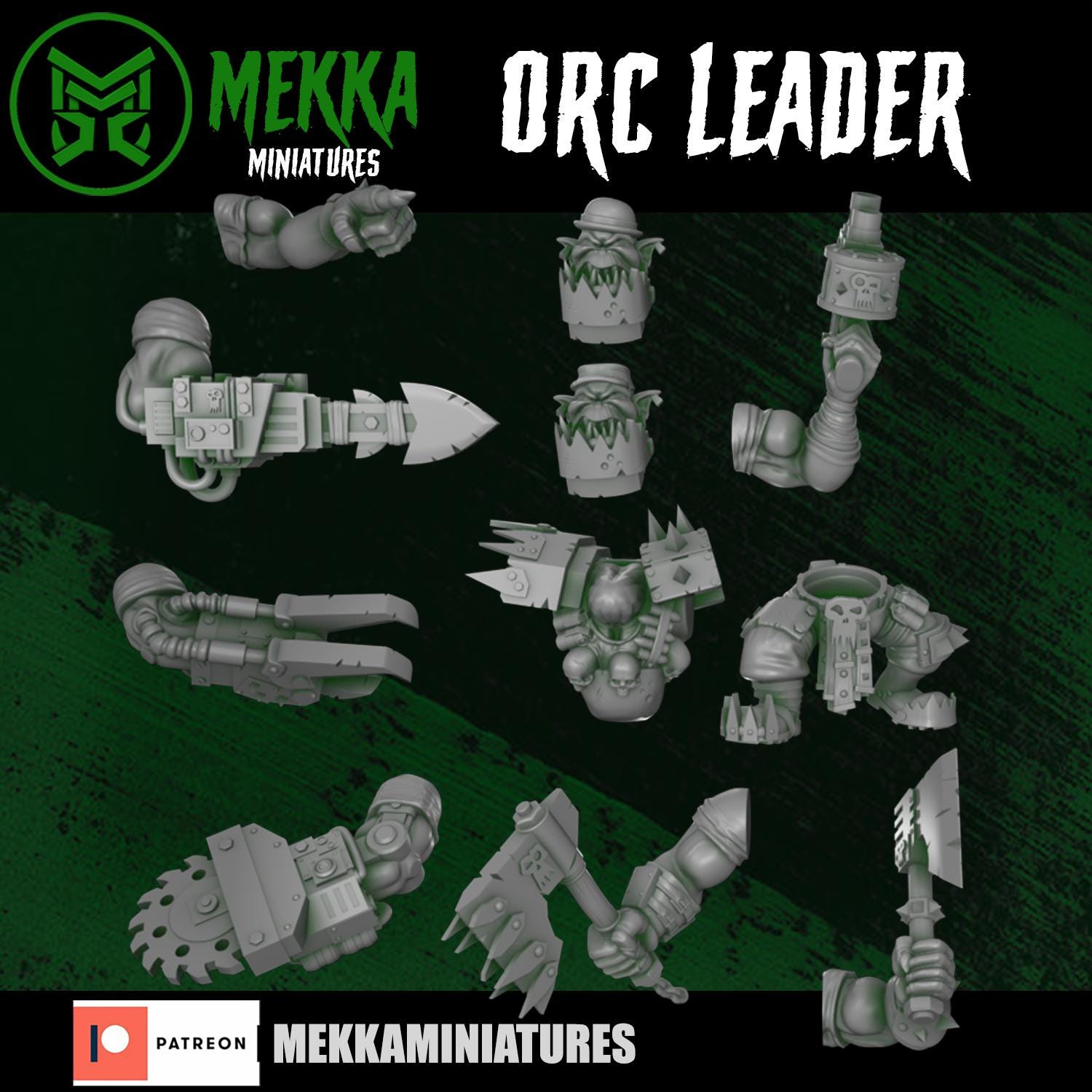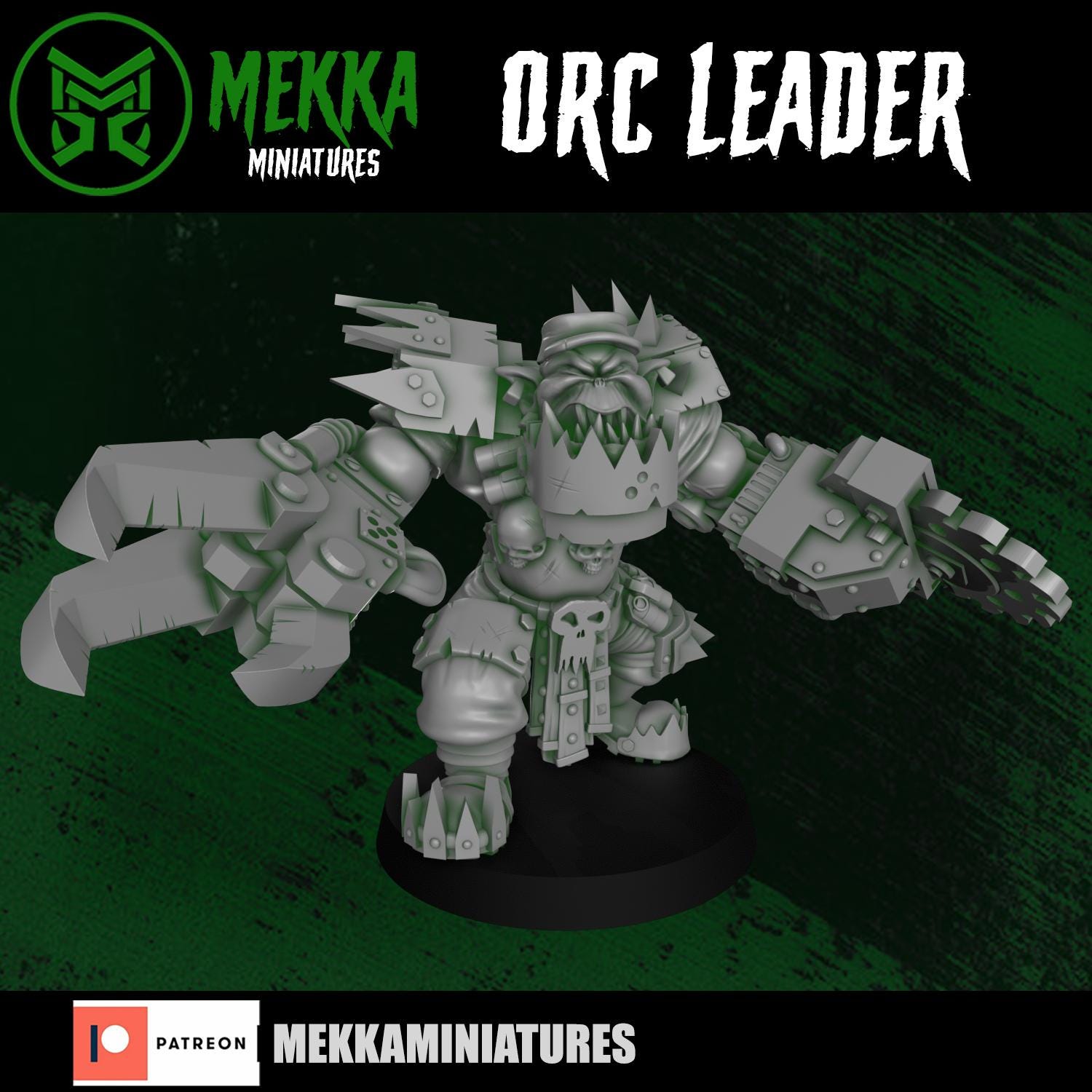 Modular Orc Leader, Space-Faring Orkish Menace Sculpted by Mekka Miniatures, Grimdark Compatible, Scaled for Sci-Fi Miniature Wargames