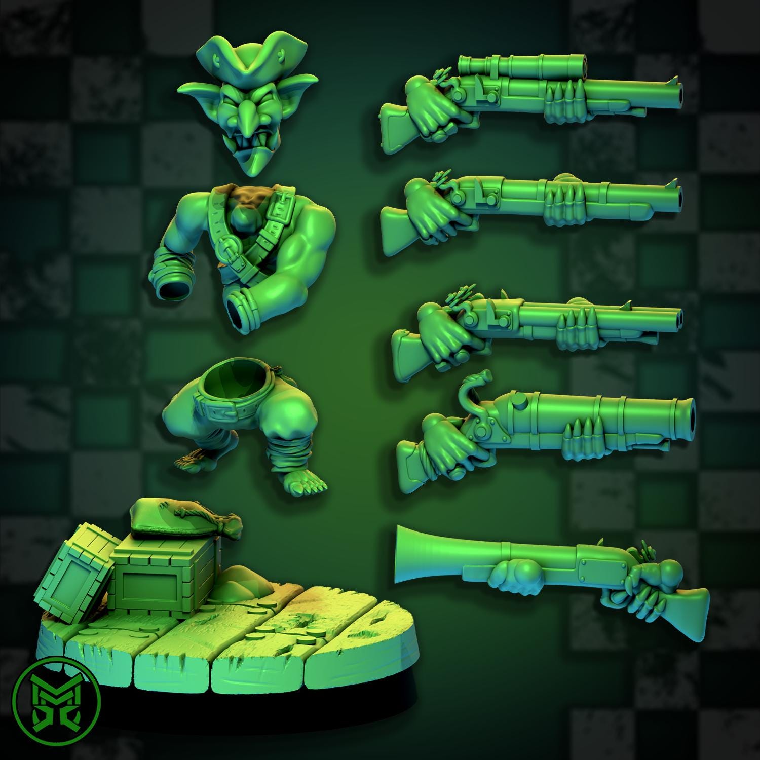 Modular Pirate Gobbos - set 1, Space-Faring Orkish Menace Sculpted by Mekka Miniatures, Grimdark Compatible, Scaled for Miniature Wargames
