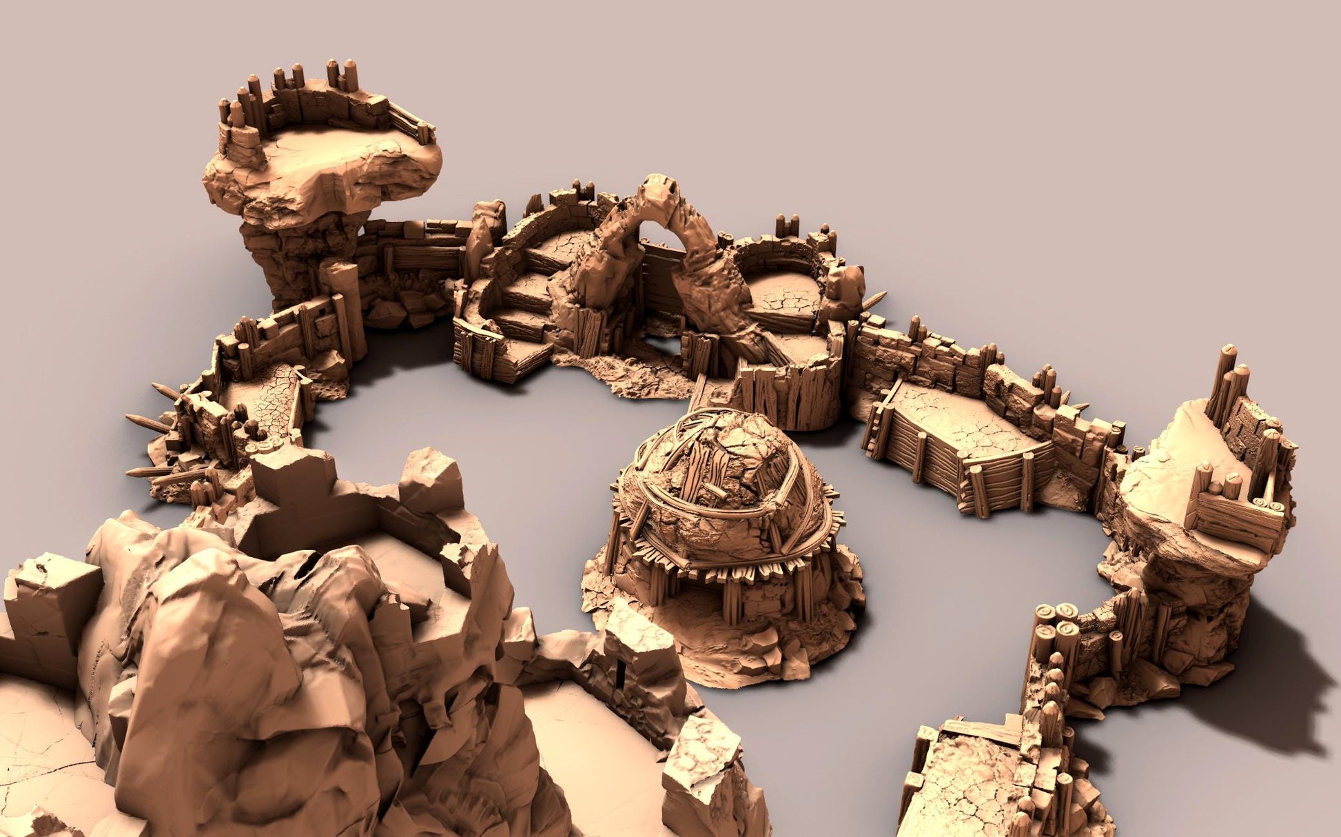 Orc Wasteland Fort and Dwarven Ruin - 3D Printed Tabletop Terrain, Perfect for Wargames, Board Games, Role Playing Games
