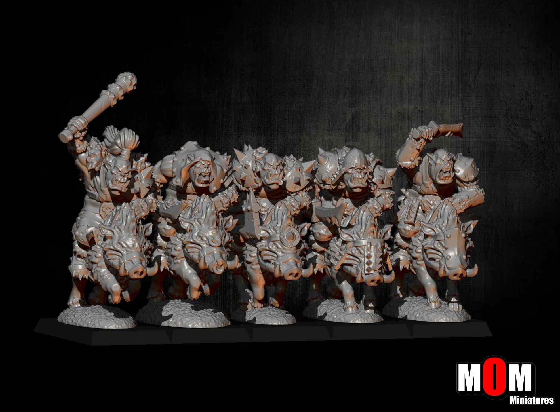Orcs on Boars, Fantasy Skirmish Miniatures by MoM Miniatures, perfect for Fantasy Wargames and RPGs
