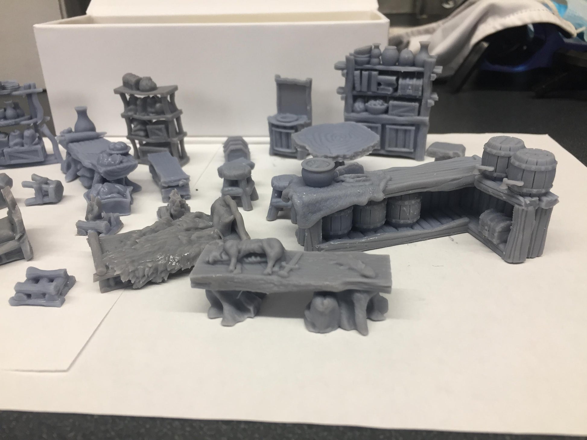 30 Unique pieces of scatter furniture and boxes to furnish a shack or small house. These are ideal scatter terrain for 28mm-32mm tabletop games.