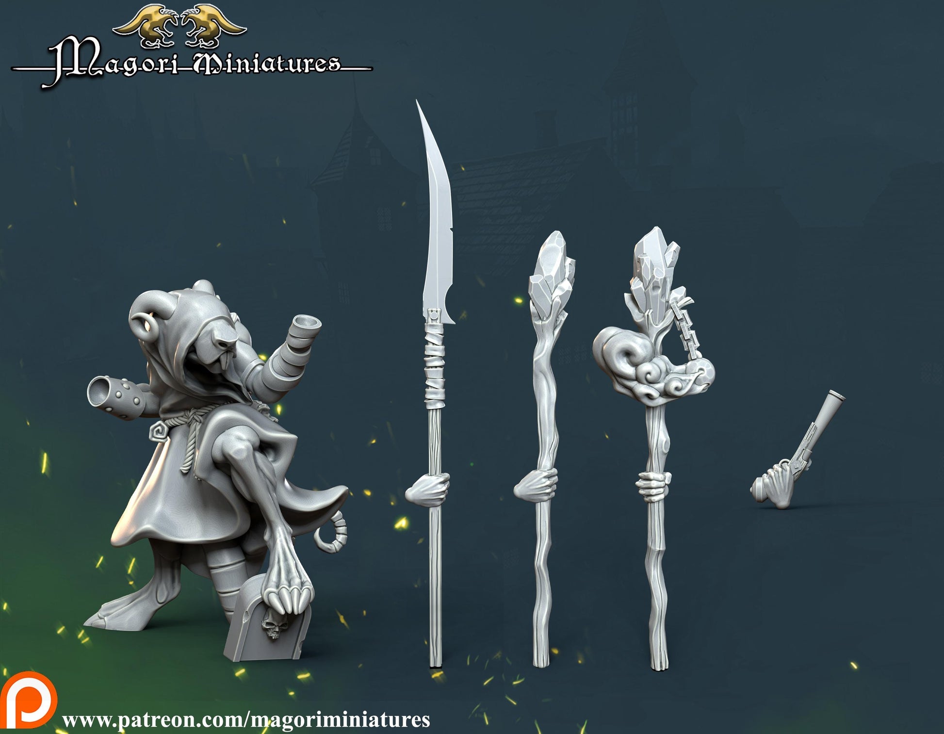Ratfolk Sorcerer, Fantasy Skirmish Miniatures by Magori Miniatures, perfect for Fantasy Wargames and RPGs