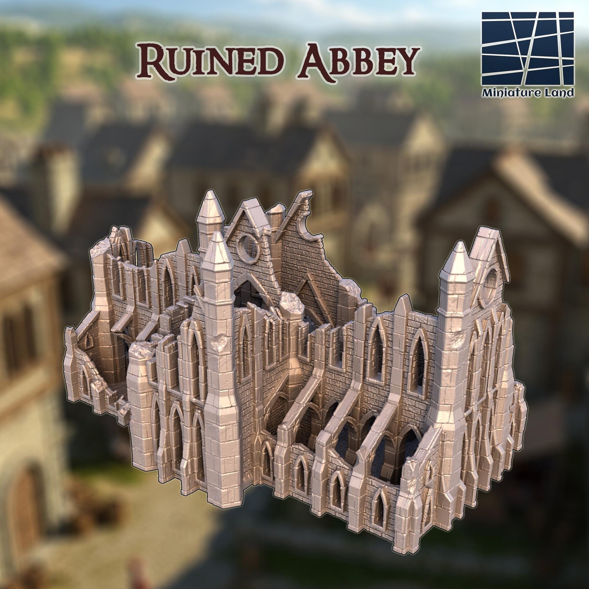 Ruined Abbey - Tabletop Terrain - 28 MM, Tabletop 3D Printed Terrain by MiniatureLand, Perfect for Wargaming and RPGs