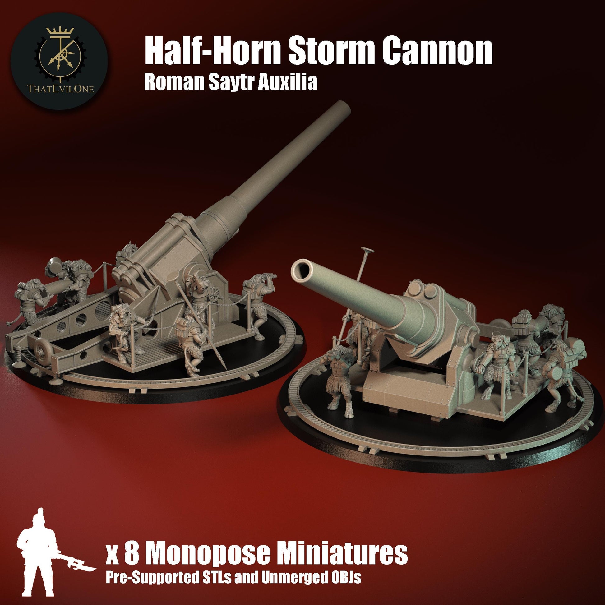 Unleash tactical mayhem with this set of 1 Saytr Half-Horn Storm Cannon - monopose miniatures designed by ThatEvilOne! TerrainForgeStudio is proud to be a licensed printer of these incredible designs. Perfect for use in Sci-fi Wargames.
