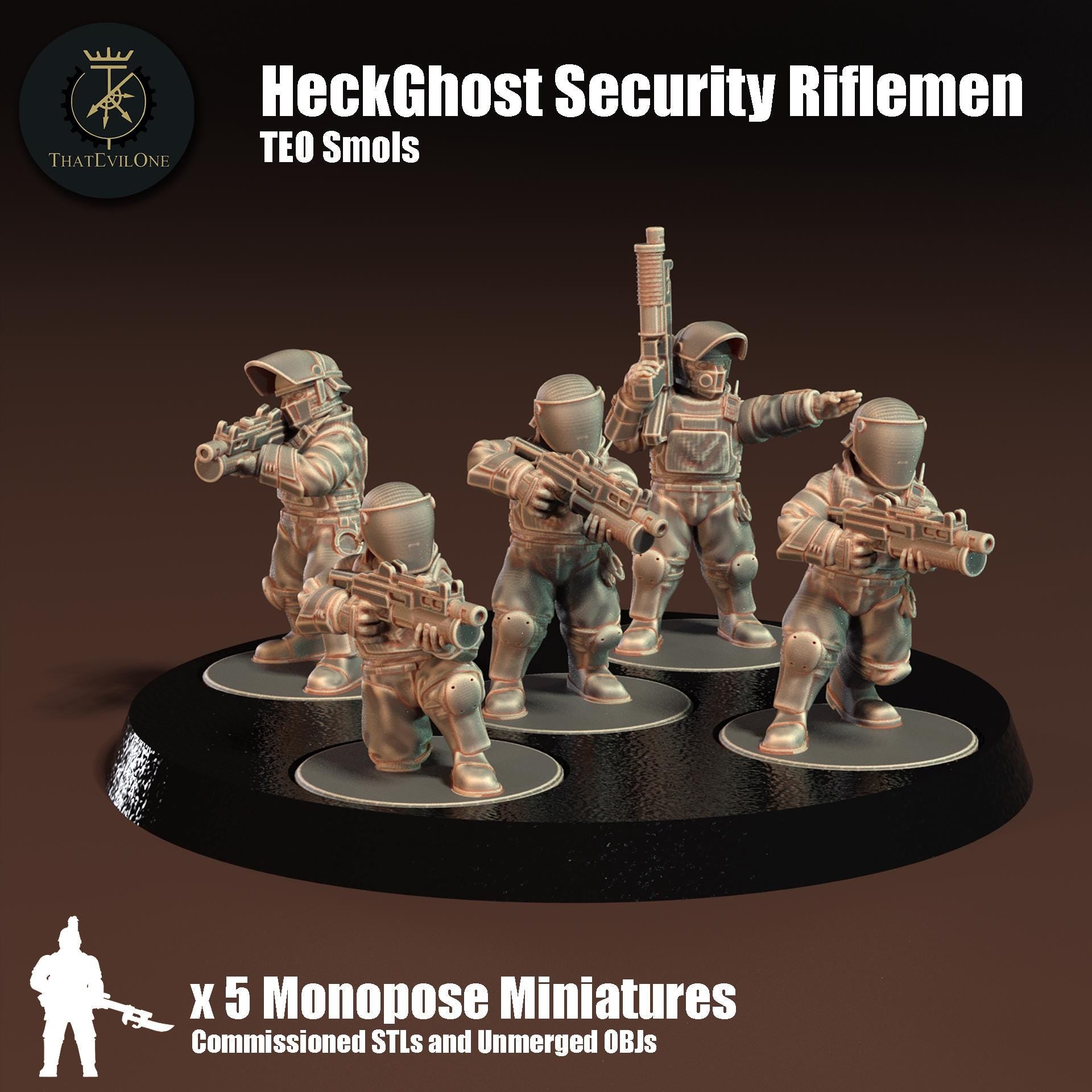 Smol HeckGhost Security Riflemen, 8mm Scale Monopose Sci-Fi warriors by ThatEvilOne, Miniature Sci-Fi Wargames Proxy