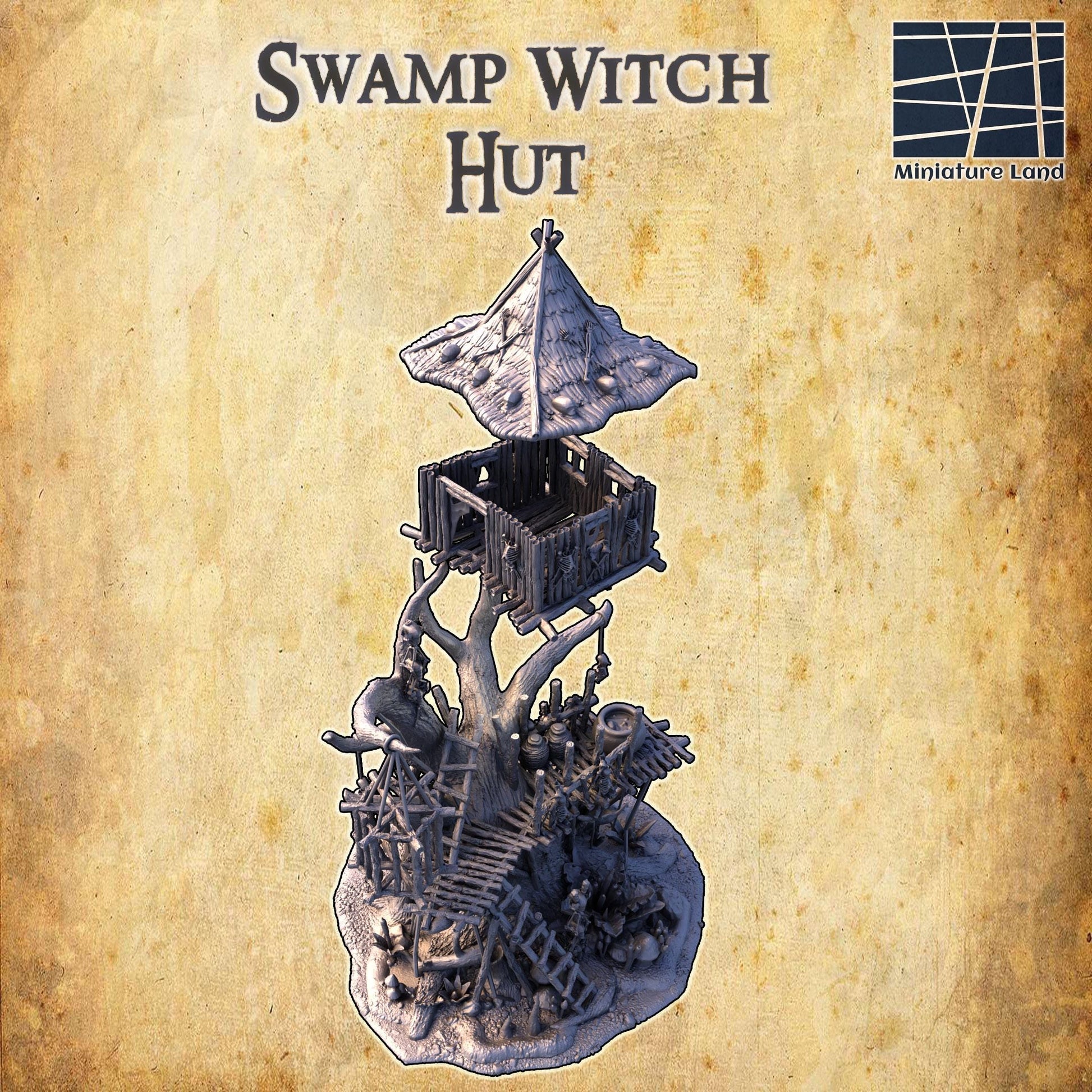 Swamp Witch Hut - Tabletop Terrain - 28 MM, Tabletop 3D Printed Terrain by MiniatureLand, Perfect for Wargaming and RPGs