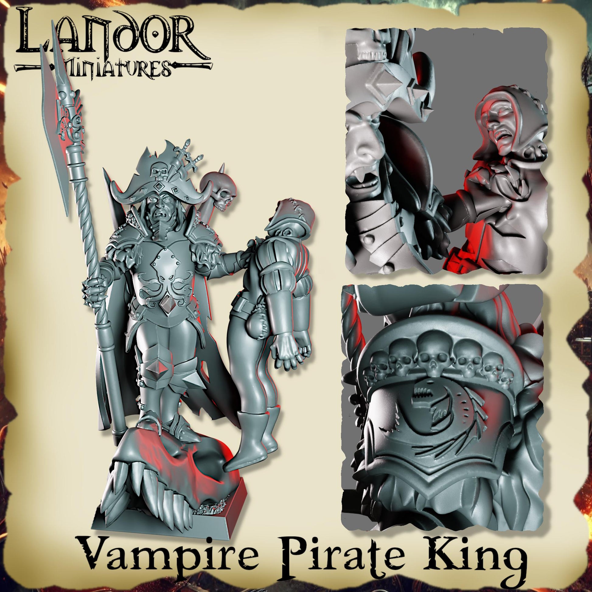 Vampire Pirate King, Modular Undead Swashbucklers by Landor Miniatures! Vampire Coast for Fantasy Wargames